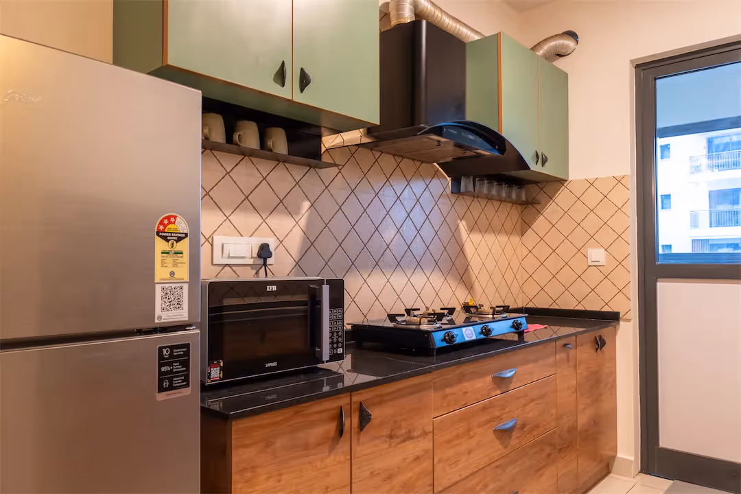 Clover is a bright, well-finished 3BHK on the 3rd floor that gets the everyday basics right — clean design, great natural light, and a calm, easy layout. The living room opens up to a wide balcony view, with soft green accents that make the space feel fresh without trying too hard. The kitchen is modern and functional, with ample storage and a neat, practical setup for daily cooking. Beyond the home, you’re stepping into a full community lifestyle — pool, play areas, open greens, and spaces that make it genuinely family-friendly. Whether you’re upgrading to more space or simply want a home that feels ready from day one, this one blends comfort, convenience, and a solid neighbourhood setup in one smooth package.