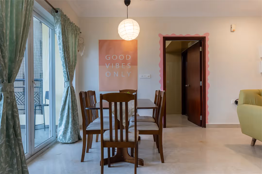 Discover this inviting 3BHK in a gated community at Kaggdaspura, ideal for those working in CV Raman Nagar, Mahadevapura, or Indiranagar. This thoughtfully designed home offers a warm, cozy vibe with a modern touch. The living room is tastefully decorated, featuring a comfortable sofa, a stylish accent chair, and vibrant wall art that adds character. A soft rug and ambient lighting enhance the relaxed ambiance, perfect for unwinding or hosting guests. Each bedroom is spacious and filled with natural light, providing a peaceful retreat. The functional kitchen offers ample storage and workspace, catering to your culinary needs. Residents benefit from community amenities, including 24/7 security, children’s play areas, covered swimming pool and recreational spaces, making it ideal for families or professionals looking for a serene yet connected home.