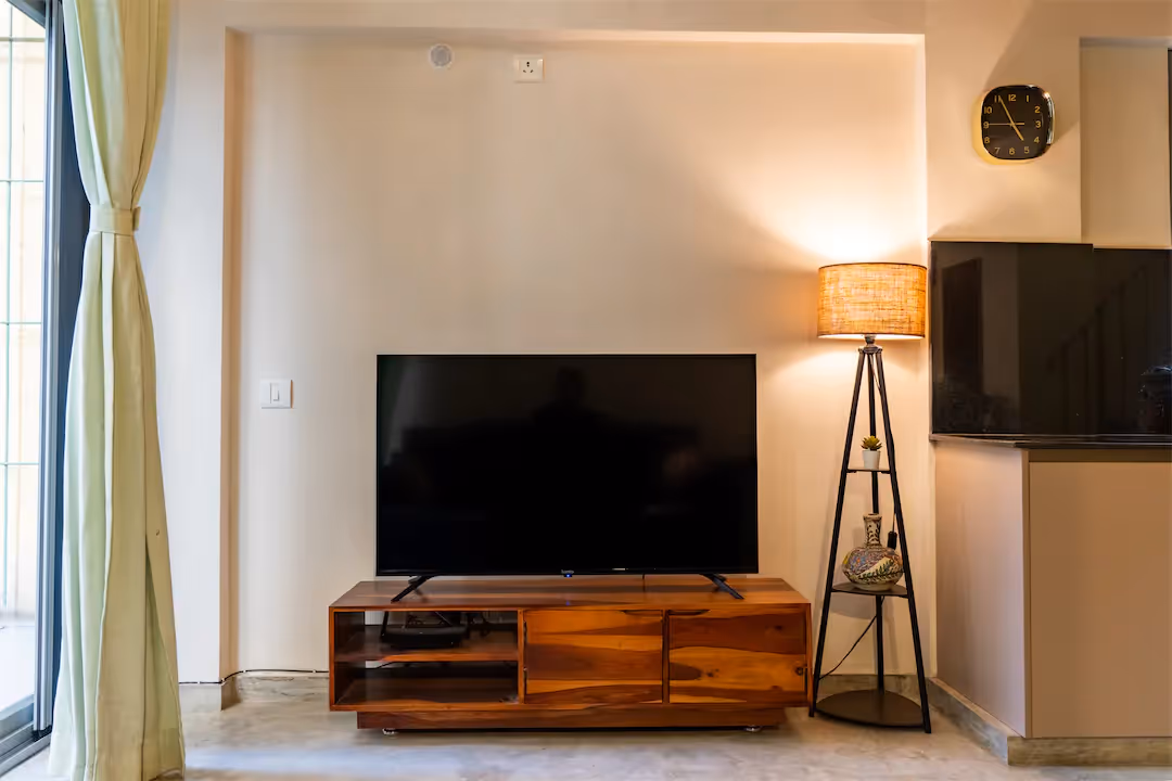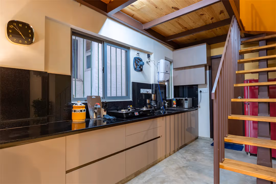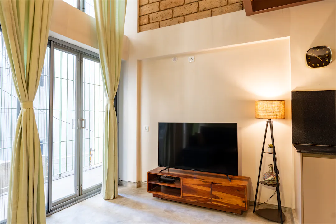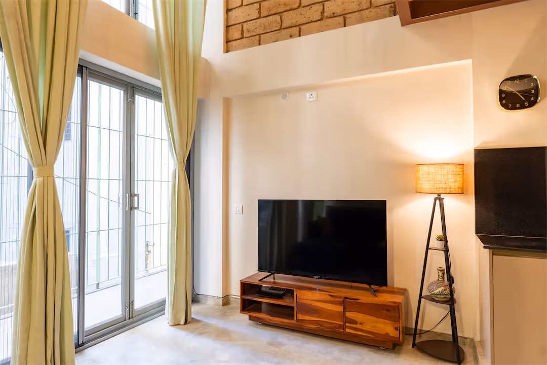 Nestled by BTM Lake, this chic duplex 1BHK blends modern design with natural beauty. Featuring double-height ceilings, floor-to-ceiling windows, and an exposed brick wall, the home is bright and inviting. The lofted bedroom offers a cozy retreat, while the open living area connects seamlessly to a private balcony. Enjoy daily walks along BTM Lake’s scenic trails or relax with a boating experience. Located in BTM Layout, this home offers easy access to IT hubs, top restaurants, shopping, and entertainment, ensuring convenience and connectivity. Perfect for young professionals or couples seeking a stylish yet tranquil retreat.