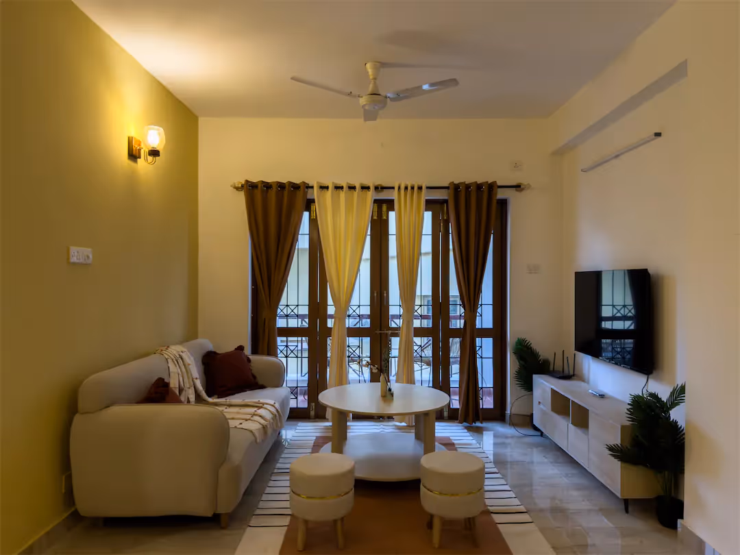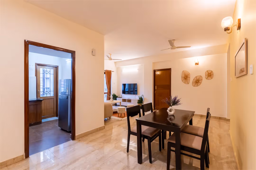 This is a modern, newly built 2BHK that feels warm the moment you step in. Soft light pours into the living room through full-height doors, while clean finishes and a neutral palette make the space easy to live in and easy to personalise. The layout is efficient without feeling tight, with a comfortable dining zone and a living area that works just as well for hosting as it does for slow evenings in. The bedrooms are calm and well-proportioned, designed for everyday comfort rather than showy layouts. Tucked into Ulsoor, you're close to the lake, cafes, and key city routes, without feeling boxed in.