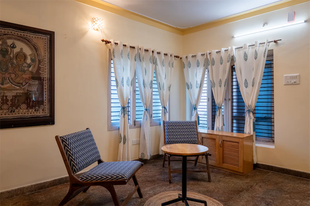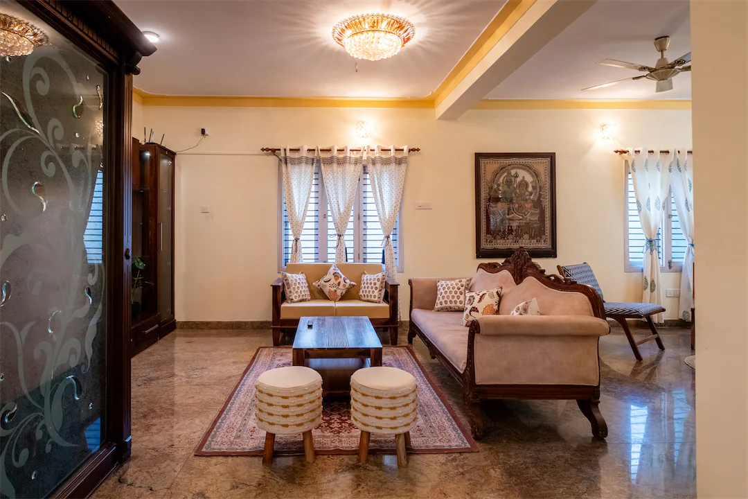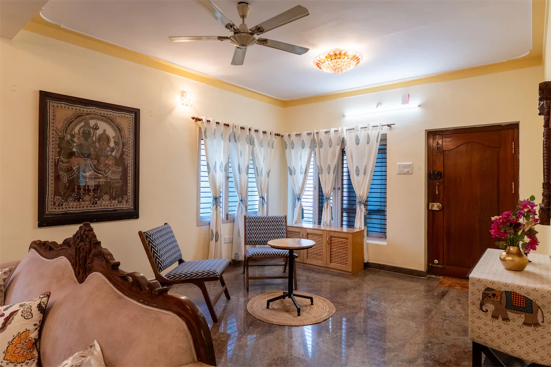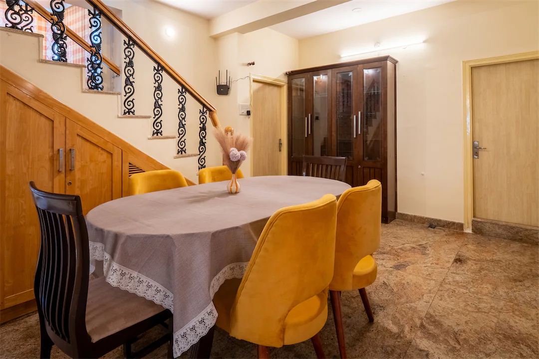 Heirloom is a rare kind of Indiranagar home—large, warm, and built for families who like their space to feel intentional. Spread across generous rooms and levels, this 5BHK balances old-world solidity with everyday comfort. The living areas are expansive and inviting, made for long conversations, festive gatherings, and slow evenings that stretch into night. Natural light filters in steadily, giving the home an easy, lived-in brightness rather than anything flashy. The dining space anchors the home beautifully—ideal for shared meals, celebrations, and routines that matter. Bedrooms are well-separated, offering privacy without feeling disconnected. This is a home for families who value permanence, room to grow, and a sense of grounding—where furniture has stories, weekends are unhurried, and the house adapts to generations, not trends.
