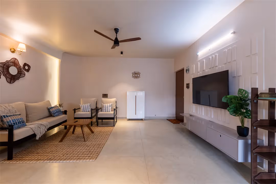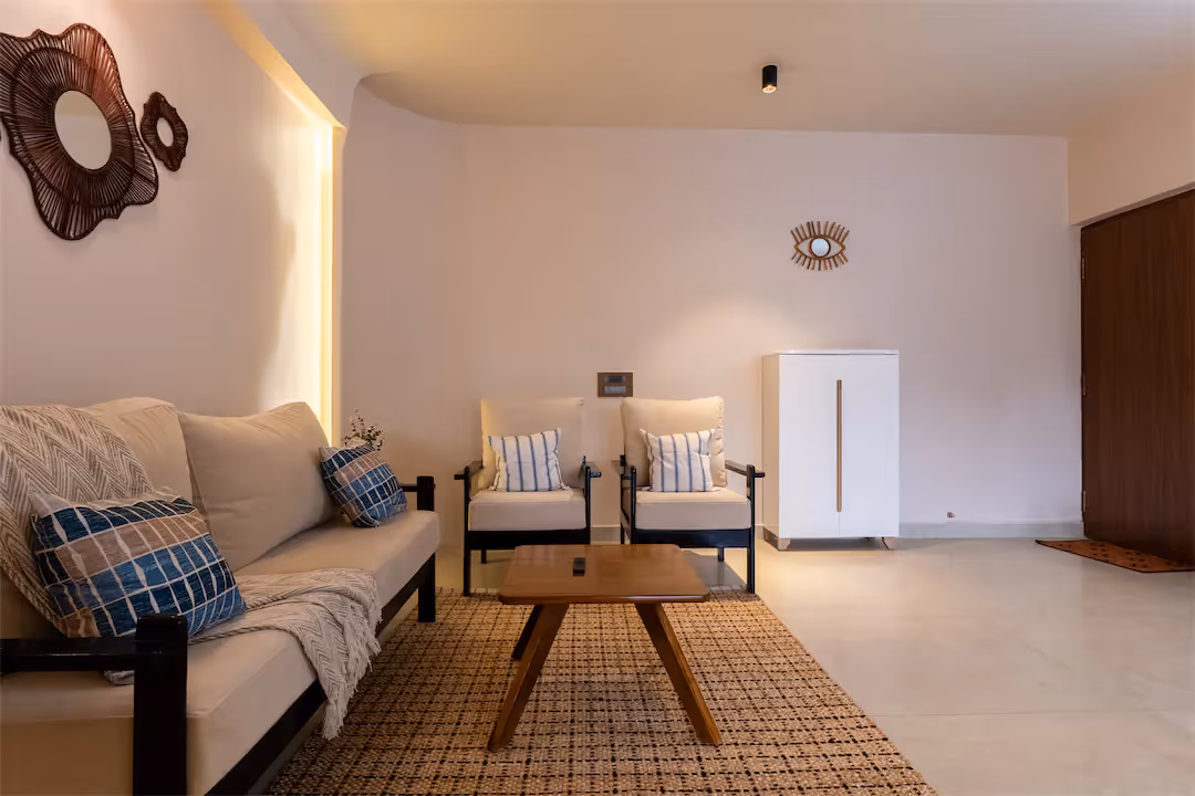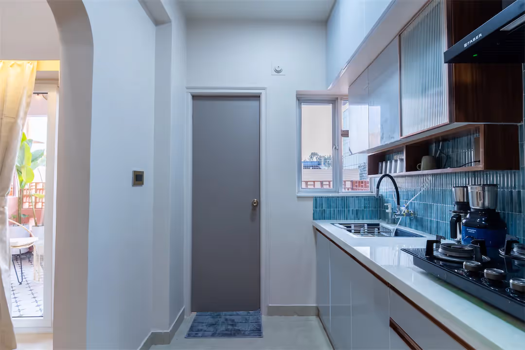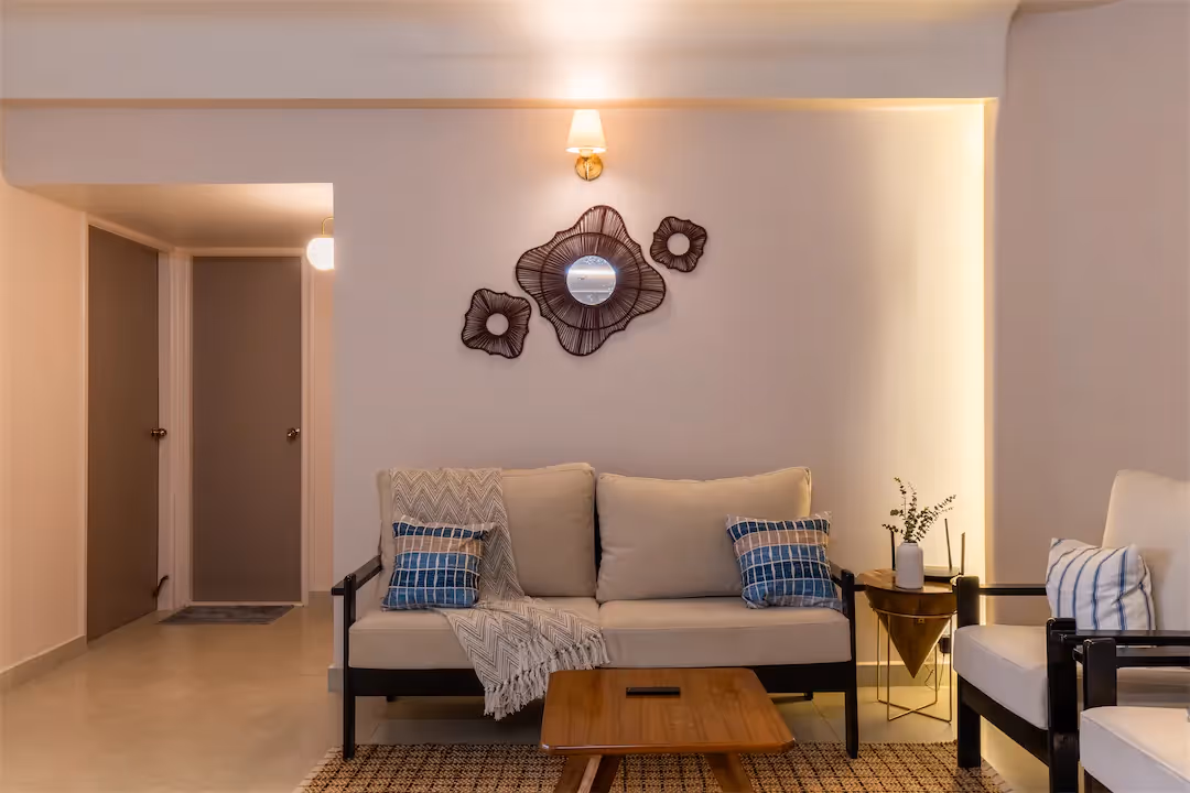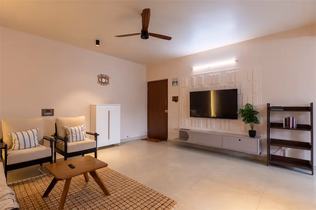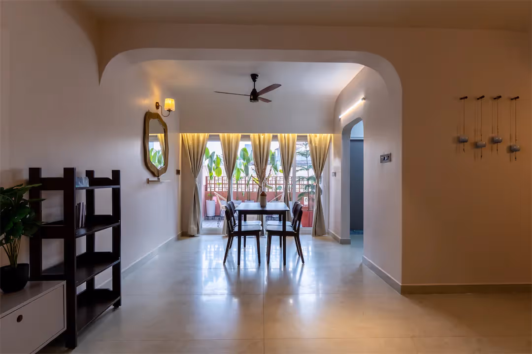 This is a high-end 2BHK that’s been done with real intent. Clean lines, soft curves, and thoughtful lighting give the home a calm, design-forward feel without tipping into sterile. The living space is warm and composed, opening out to a balcony that feels like an extension of the home—perfect for slow mornings, plants, or a quiet drink at sunset. The layout flows effortlessly from living to dining, with just enough separation to make each space feel considered. Bedrooms are plush, muted, and private—built for winding down, not just sleeping. Set in the heart of Indiranagar, you’re close to everything, yet the home itself feels tucked away and unhurried.